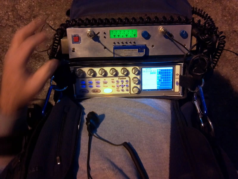 A lifelong fascination with radio and electronics led him to quit cable tv and get hired as an air talent on FM music radio in Dallas, back when they still played vinyl records and CD's (digital!) and he attended loads of rock concerts and other local events for free, the air staff even had a (terrible) band and played gigs in psuedo-celebrity style. He is still curiously obsessed with all things radio... About the same time, Sally contributed part of a small inheritance to buy a tiny 2 VHF wireless/boom mic/3 channel mixer package (thanks, Sally).